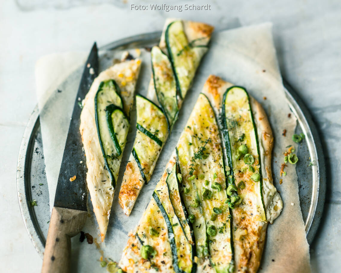 Foto: Wolfgang SchardtZucchini-Flammkuchen mit Ziegenkäse